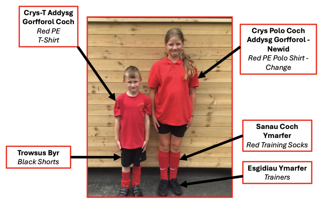 Gwisg Addysg Gorfforol/Physical Education Uniform